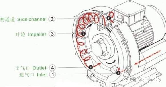 當(dāng)葉輪開始轉(zhuǎn)動(dòng)時(shí),泵體內(nèi)就有產(chǎn)生壓力,風(fēng)機(jī)內(nèi)的特殊設(shè)計(jì)不會(huì)使空氣倒流,空氣通過泵體左側(cè)的通道側(cè)槽,當(dāng)它進(jìn)入泵體內(nèi)以后經(jīng)過葉輪旋轉(zhuǎn),氣體會(huì)被壓縮,由于離心力的原理,數(shù)個(gè)葉片風(fēng)向標(biāo)促使氣體向前積壓運(yùn)動(dòng),泵體內(nèi)會(huì)形成一系列螺旋狀的空氣流動(dòng)。經(jīng)過不數(shù)旋轉(zhuǎn)壓縮后,葉輪刀片之間的空氣會(huì)呈螺旋狀加速旋轉(zhuǎn),直至能過出氣品排出泵體外