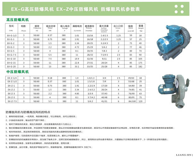 鼓風(fēng)助燃1.5KW中壓防爆風(fēng)機——上海良進機電設(shè)備有限公司有限公司生產(chǎn)防爆中壓風(fēng)機產(chǎn)品。防爆風(fēng)機由防爆電機、葉片、調(diào)速器等組成,鑄鋁合金外殼鑄造成型,表面噴塑。調(diào)速器的調(diào)速可通過外殼旋鈕進行,并可進行鋼管或電纜接線,符合GB3836-2000和iec60079標(biāo)準(zhǔn)的要求。