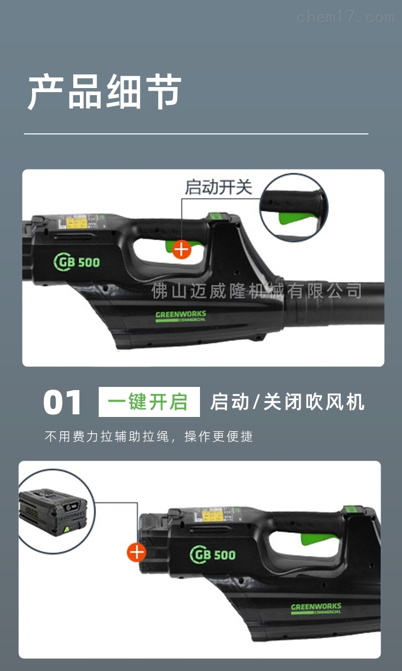 產(chǎn)品詳細(xì)信息:一鍵啟動/關(guān)閉吹風(fēng)機(jī),無需用力拉動輔助拉繩,操作更方便;82v鋰電池:大功率,鋰電池,重量輕,壽命長;風(fēng)管:吹風(fēng)管,材質(zhì)好,硬度高。